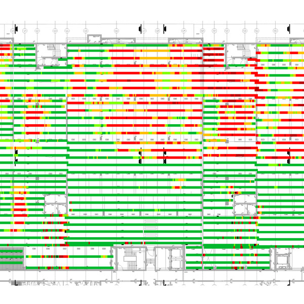 Die Stahlbewehrung von Betonbauteilen muss eine – abhängig von den Umwelteinflüssen – ausreichende Betondeckung aufweisen. Durch zerstörungsfreie, magnetische Messung kann diese erforderliche Überdeckung kontrolliert werden. Wir setzen dafür qualifiziertes Personal ein und erstellen aus den umfangreichen Dateien klar und einfach erkennbare graphische Darstellungen.