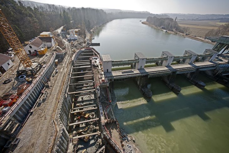 Neubau eines Wasserkraftwerks unmittelbar neben der bestehenden Stauanlage